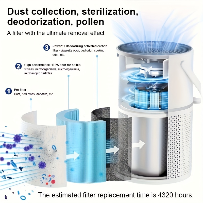 Air Purifier with HEPA Filter, Quiet Operation, Scented Sponge & Timer Mode - for Home, Office, Living Room, Bedroom - Ideal Christmas Gift - USB-Powered - No Batteries