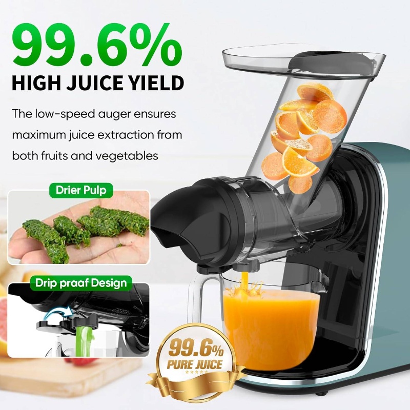 Cold Press Juicer, Non - Clog Slow Masticating Juicer Soft/hard Mode Quiet Motor, 3.6 Inch Large Feed Chute Vegetable and Fruit, Easy to Clean Juicer Machines, Dishwasher Safe, High Yield, Cold Pressed Juicer, Healthy Juicing, Home Juicing