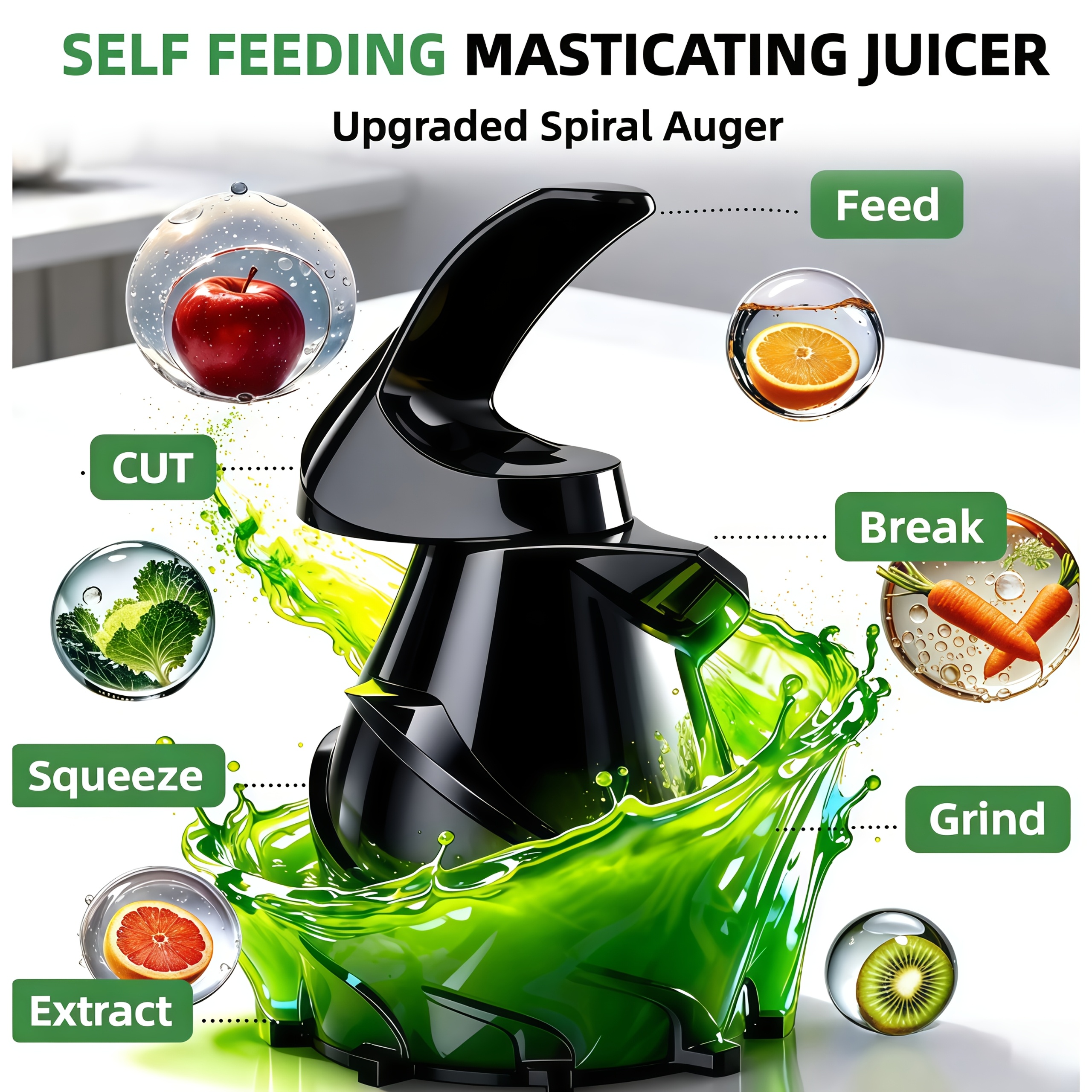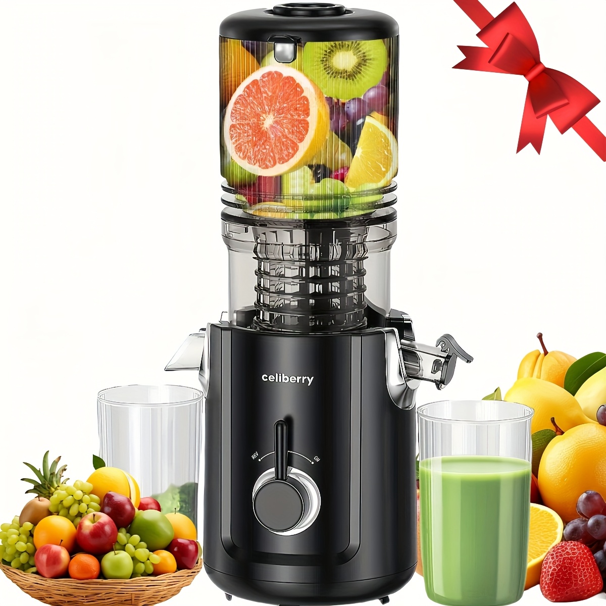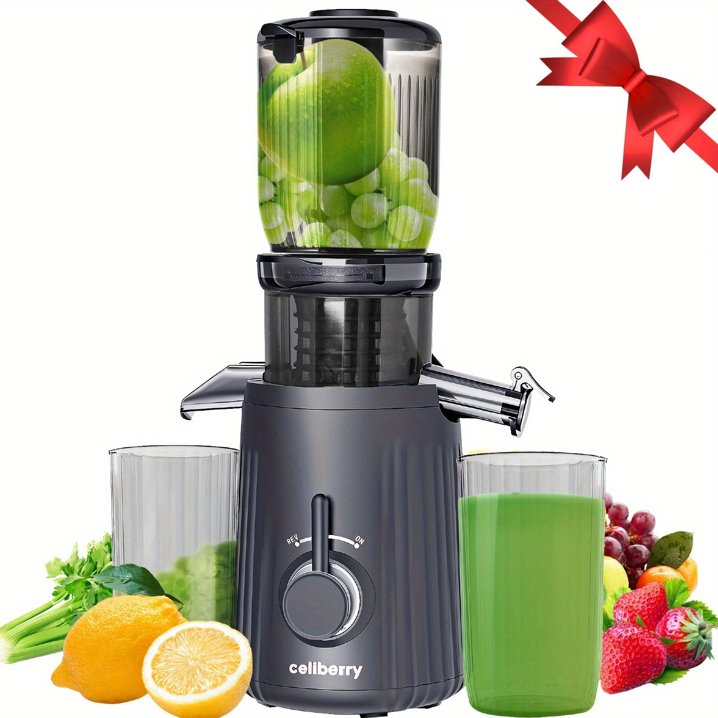 Celiberry Slow Masticating Cold Press Juicer Machine with 4.1" Wide Mouth Large Feed Chute, Self-Feeding Quiet Motor (55 RPM), Pulp Separation, Compact Low-Speed Juicer for Whole Fruit, Vegetables, Leafy Greens, Lemon, Beet, Carrot