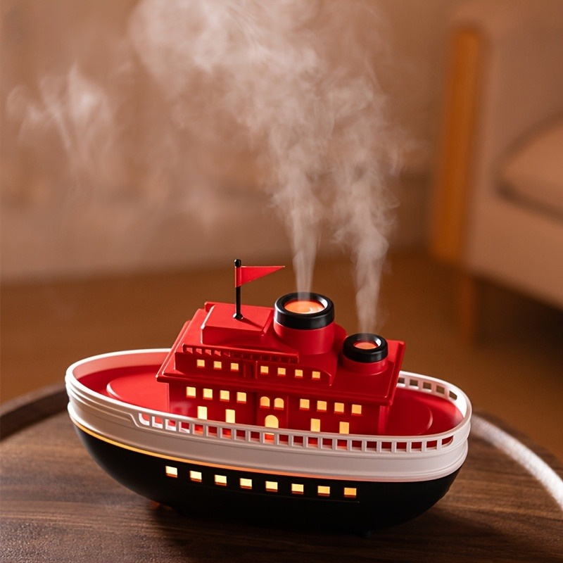 USB-Powered Ship-Shaped Humidifier & Aromatherapy Diffuser with Ambient Lighting, Non-Wet Safe Tabletop, Dual Nozzle Large Mist for Home, Office, Bedroom - Ideal Holiday Gift for Maritime Decor Lovers, Bedroom Moisture Solution